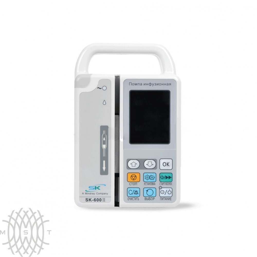 Инфузионный шприцевой насос Mindray SK-600II с цветным LCD-дисплеем и системой «Антиболюс», позволяющей препятствовать введению крупных болюсов после устранения закупорки, является одним из лучших приборов данного производителя. Аппарат предполагает возможность беспроводного обмена данных с системой контроля за инфузиями и прикроватными рабочими станциями. Насос оснащен встроенной системой безопасности, которая не только предупреждает персонал об окончании инфузии, но и подает сигналы тревоги при таких опасных нарушениях процесса инфузии, как окклюзия в инфузионной линии, отсутствие раствора, наличие пузырьков воздуха в системе и др.