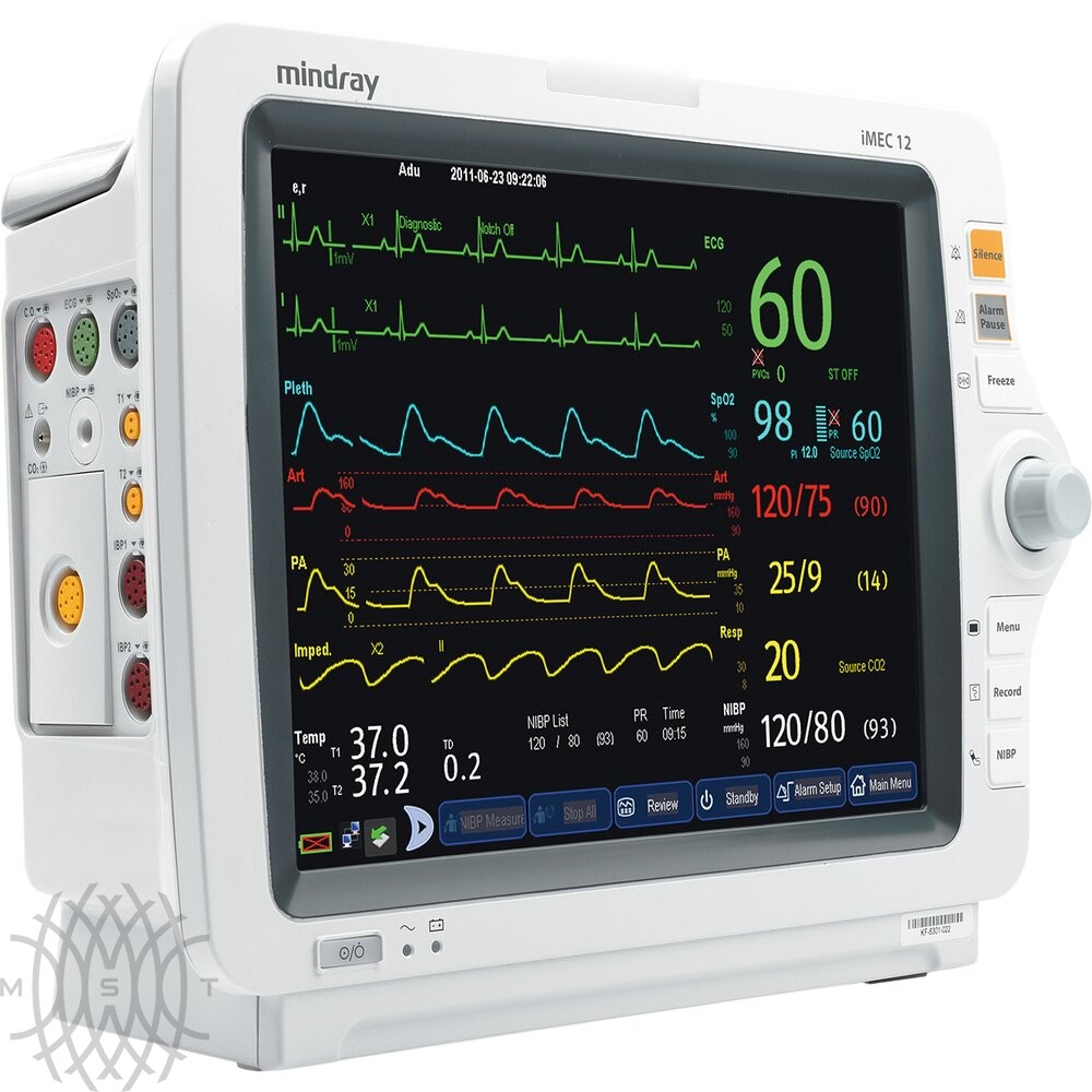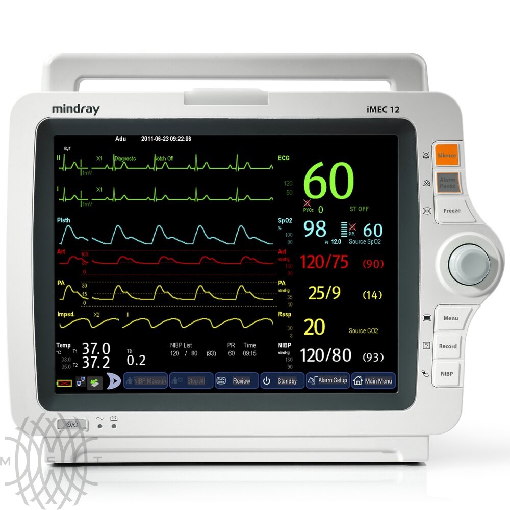 Mindray iMEC 12 — монитор пациента, предназначенный для операционных, отделений кардиологии, реанимации и палат интенсивной терапии. Он отслеживает и предоставляет информацию о жизненно важных показателях больного. Модель подходит для всех категорий пациентов: взрослых, детей, новорожденных. Прибор моментально реагирует на изменение состояния больного и информирует об этом больничный персонал.