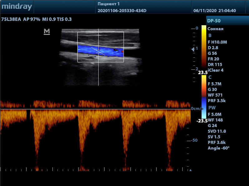 Автоматическое измерение толщины передней и задней стенки, предоставляющее точную информацию о состоянии сонной артерии.